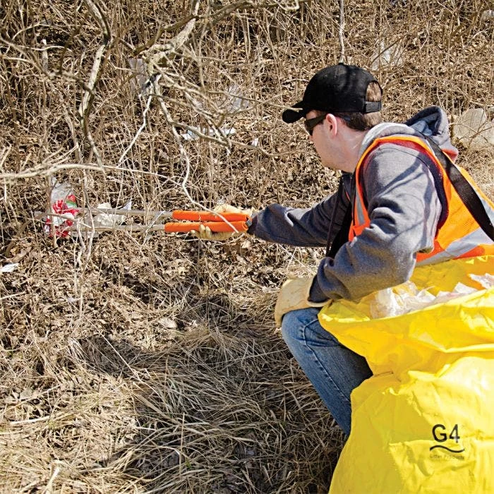 The adjustable shoulder strap on the Clean Up Bag makes it easy to carry and transport, especially when it is full. This feature is particularly helpful for road crews and grounds maintenance workers who need to move the bag frequently.