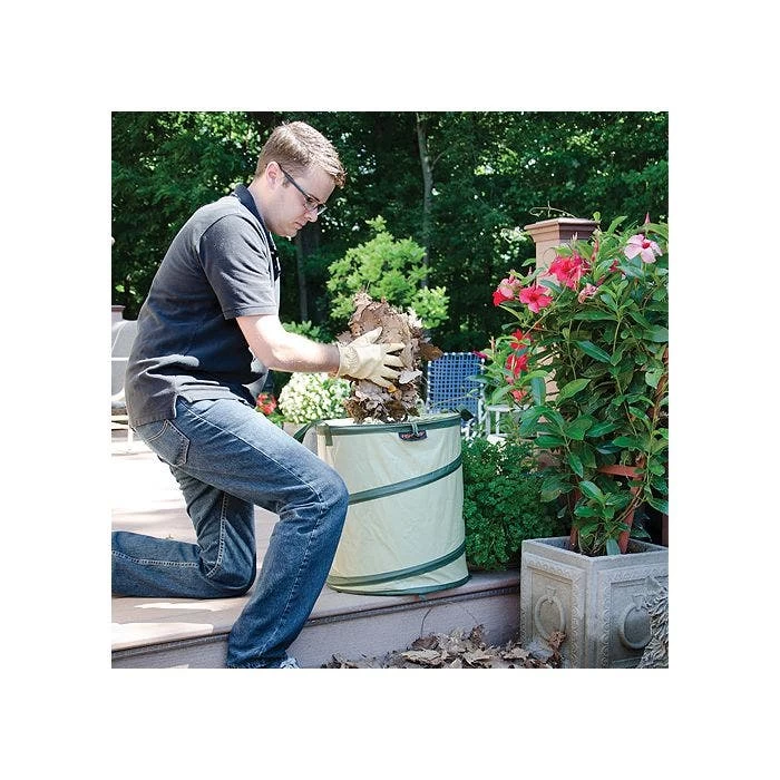 Fiskars created the 10-gallon Kangaroo Bag for both convenience and durability. The pop-up design of the bag allows the bag to remain open and upright, leaving your hands free to pick up debris. This design also makes setup incredibly easy. Durable vinyl-coated polyester makes this product resistant to tearing, mildew, and the effects of UV. The bottom of the bag is soft and flexible. Sturdy handles make carrying loads much more comfortable. When you have finished your cleanup, simply collapse the bag and hang it up. At just 3 inches tall and 16 inches diameter, it will not take up valuable space.