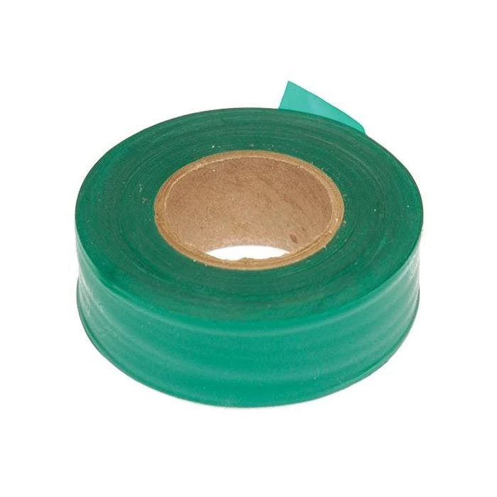 This Solid Color Flagging Tape features a durable plastic construction. Each roll of non-adhesive tape measures 1-3/16 inches in width and 300 feet in length. This box contains 12 rolls of green tape.
