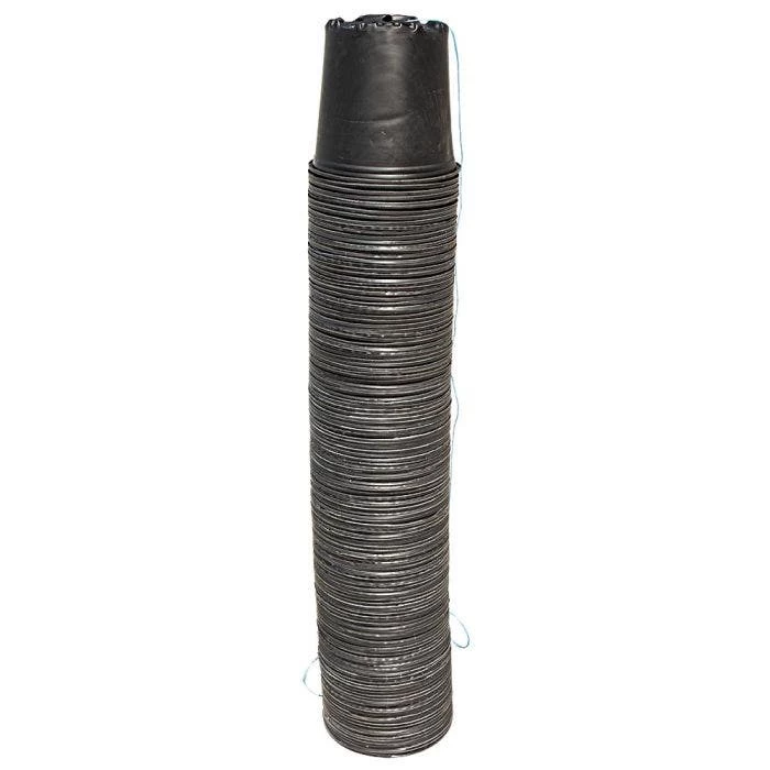 Haviland Nursery Containers are the reliable choice for durability and performance in the growingindustry. Our High Performance Series Thermoformed Containers feature a rolled lip, making them easier to carry and reducing the risk of damage during transportation. The fluted bottom design creates a stronger base for stacking, while the extra drain holes ensure better drainage with no standing water. With bottom drain holes, our containers offer a more attractive look and help reduce weed growth compared to side holes. The strong container lip makes them easier to work with during production and stacking for shipment. These containers are also made from 100% recycled material, supporting sustainable practices. With a top diameter of 9 inches, height of 8.5 inches, and a volume of 1.5 gallons (5.68 liters), our Haviland Nursery Containers are the perfect choice for your growing needs. Each bundle includes 150 containers, providing ample supply for your projects.