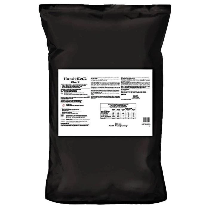 Humic DG CharX is composed of 50% high quality humic acid and 50% granulated biochar.