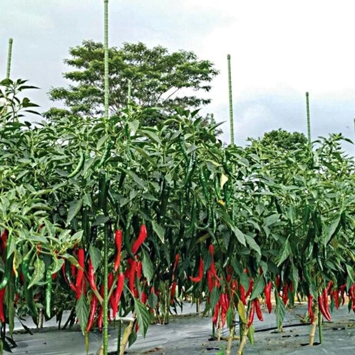 Ring spacing is closer together near the bottom and increases as it goes up, to coincide with a plant’s growth. Double rings every 50 cm help you insert to an even height. Protruding rings offer more tie off areas. Waterproof, heat-sealed caps stay in place. The look and feel of bamboo, with the strength of steel. Durable heavy gauge steel in all-weather, polyolefin resin coating won’t warp, rot or rust. Resists chemicals and lasts for years. They are in an attractive “plant green”, to blend in with foliage. Priced per bundle of 10; call for special pricing on 2,000 or more