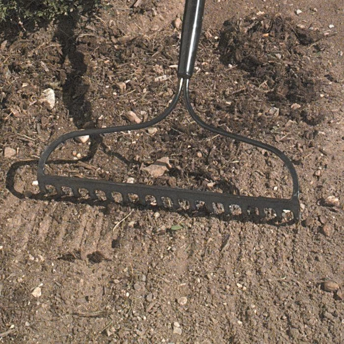 Bow-style rakes have a little more flex than a ‘T’ head rake, providing extra give when you hit an obstacle like a rock or root. The Leonard Bow Rake also has curved teeth, which allows you to move more of what you are raking.