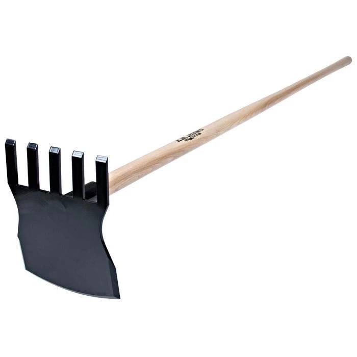 We make this tool using a strong carbon steel. Dig a hole for plugs with a single swing or dig a hole for big enough for a quart-sized plant in only 2 or 3 swings! The sharpened 2-inch tines and the 7-inch blade will provide years of service. Equipped with a 60″ American Ash Handle. Made in the USA! Ship wt. 3.1lb.