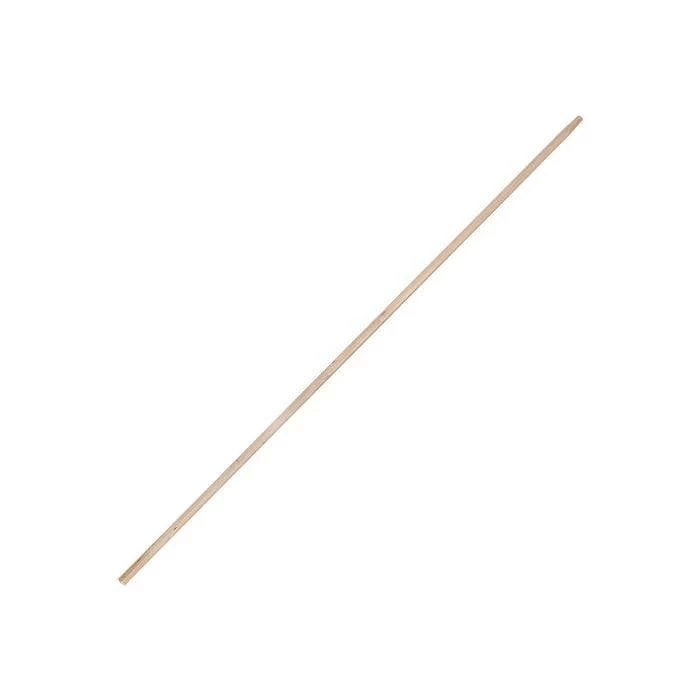 8 feet x 1-1/4 inches. solid wood, kiln-dried Western Hemlock, no ferrules.