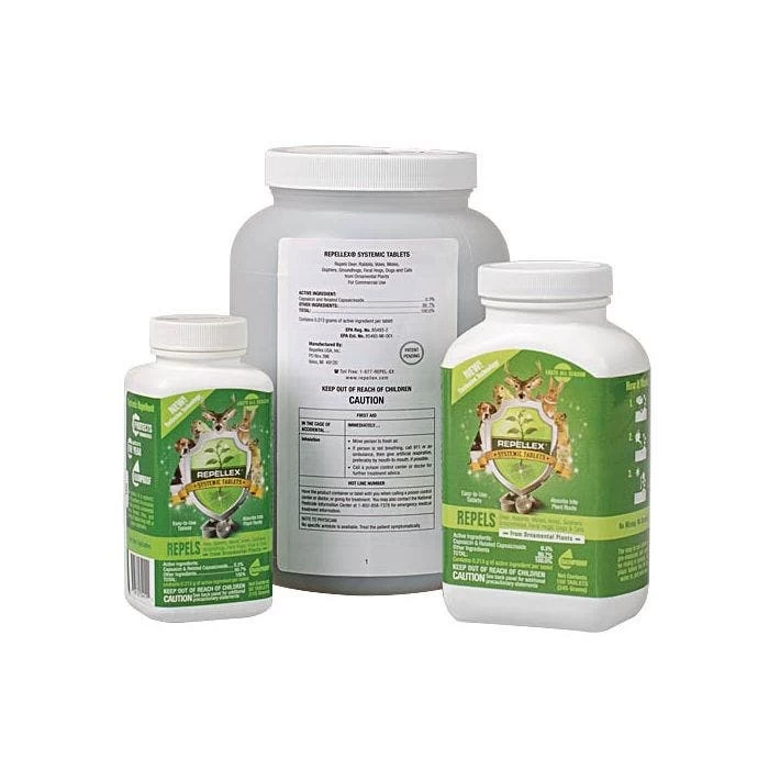 Unlike other repellent products which are sprayed onto the plant surface, Repellex Systemic Animal Repellent is absorbed through the roots and protects plants from the inside out. Repellex Systemic Animal Repellent was developed for use on landscape plants and non-edible crops. The active ingredient is capsaicin, a concentrated extract of hot chili peppers. Since it can’t be washed off of the plant, it should not be applied to crops for consumption.
